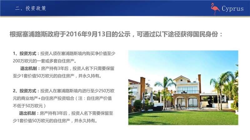 3)在塞国购买200万欧或以上的自住房产;或在塞国投资150万欧元居住房房产项目+加50万自住房